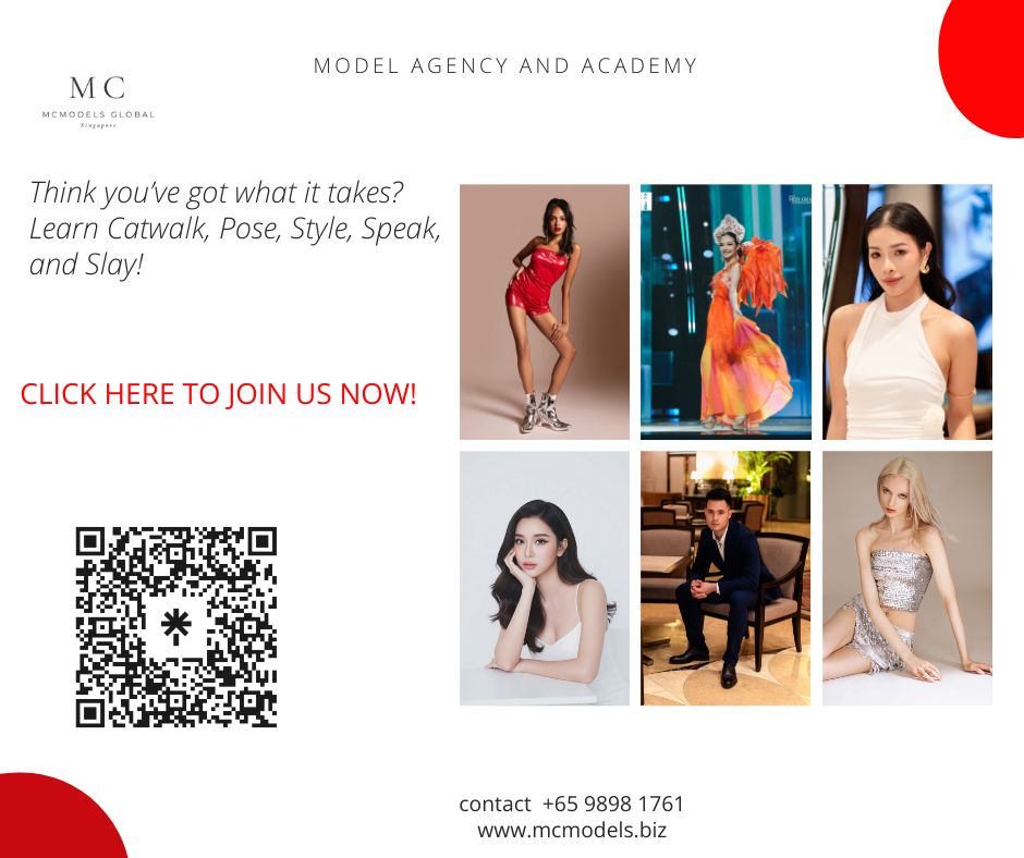 MC Models is the leading modelling agency in Singapore who provides a platform for aspiring models to pursue their dreams of becoming a model. Our agency provides a network of industry contacts, allowing models to connect with potential clients and employers.
